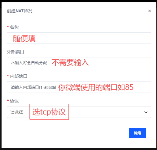 内部端口:就是你微端用到的端口,比如填的是85